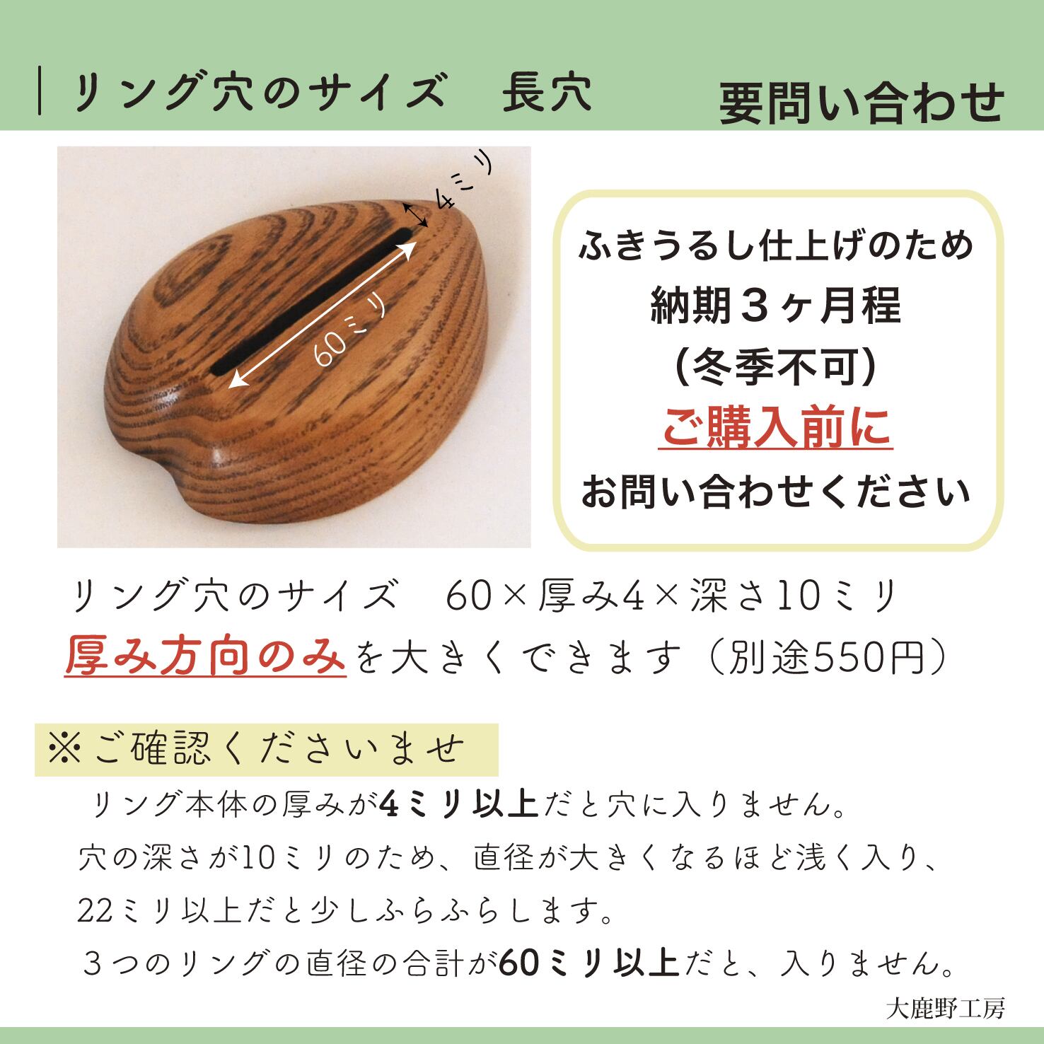 リング穴の大きさ:60×4×深さ10ミリ